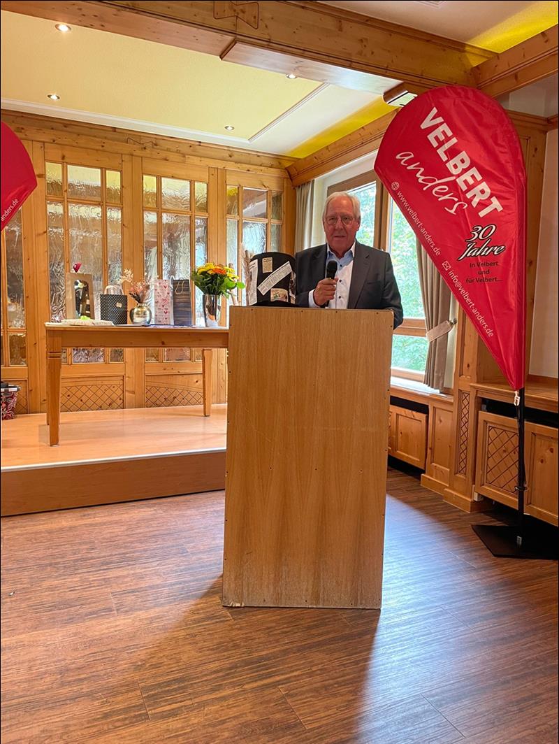 Danach übernahm der stellvertretende Vorsitzende, Peter Oentrich, der ebenfalls seit 30 Jahren dieses Amt bekleidet, das Wort und wies auf die politischen Veränderungen hin, die sich in dieser Zeit ergeben haben und die die politische Arbeit verändert haben. Fazit war, dass durch den Entfall der 5% Hürde, sich die Anzahl der Fraktionen im Rat mehr als verdoppelt hat und dadurch die Mehrheitsbildung im Rat deutlich schwerer geworden ist. Er wies auch darauf hin, dass unsere Wählergemeinschaft sich nur und ausschließlich für die Stadt Velbert einsetzt, und nicht ideologisch durch die Landes- oder Bundespolitik beeinflusst werden kann. Abschließend appellierte er an alle politischen Vertreter keine Feindbilder aufzubauen und auch bei unterschiedlichen Ansichten, fair und auf augenhöhe miteinander zu disskutieren. Wer heute Porzellan zerschlägt, wird es schwer haben, nach der Kommunalwahl in 2025 eine stabile demokratische Mehrheit zu bilden.